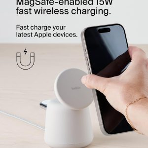 Belkin 2-in-1 MagSafe Wireless Charging Dock 15W Fast Charge iPhone Charger Compatible with iPhone 16, 15, 14, and 13 Series, AirPods, and Other MagSafe Enabled Devices, Includes Power Supply – Sand