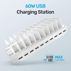 Unitek Multi Charging Station, 10-Port USB Charger for Multiple Device with SmartIC Tech and Adjustable Dividers, Organizer Stand Compatible with iPad, Tablet, Kindle, iPhone