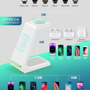 Wireless Charging Station, 3 in 1 Fast Desk Charging Station, Wireless Charger Stand for iPhone 15/14/13/12/11 Pro Max/X/Xs Max/8/8 Plus, AirPods 3/2/pro, iWatch Series 9/8/7/6/5/SE/4/3/2