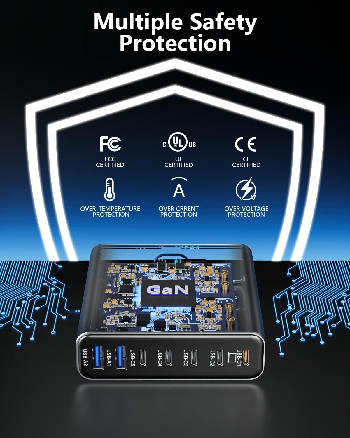 Aluminum Alloy 260W USB C Charger GaN Charger Fast USB C Charging Station 7 Ports 65W Laptop Charger for MacBook Pro/Air/iPad Pro/iPhone (Grey)